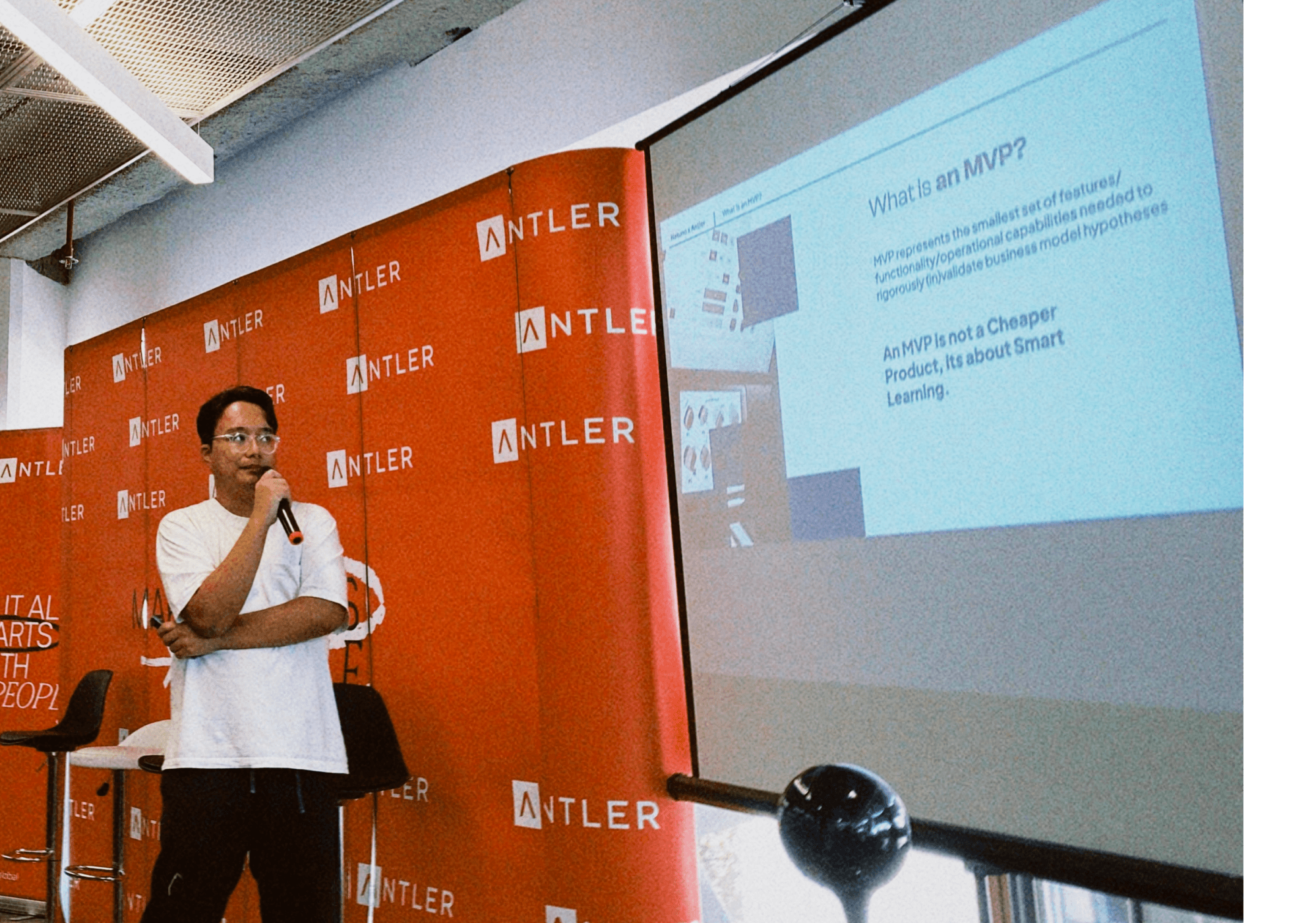 Our director giving workshop on how to ship an MVP with no-code and AI solutions to antler’s incubation programmes.